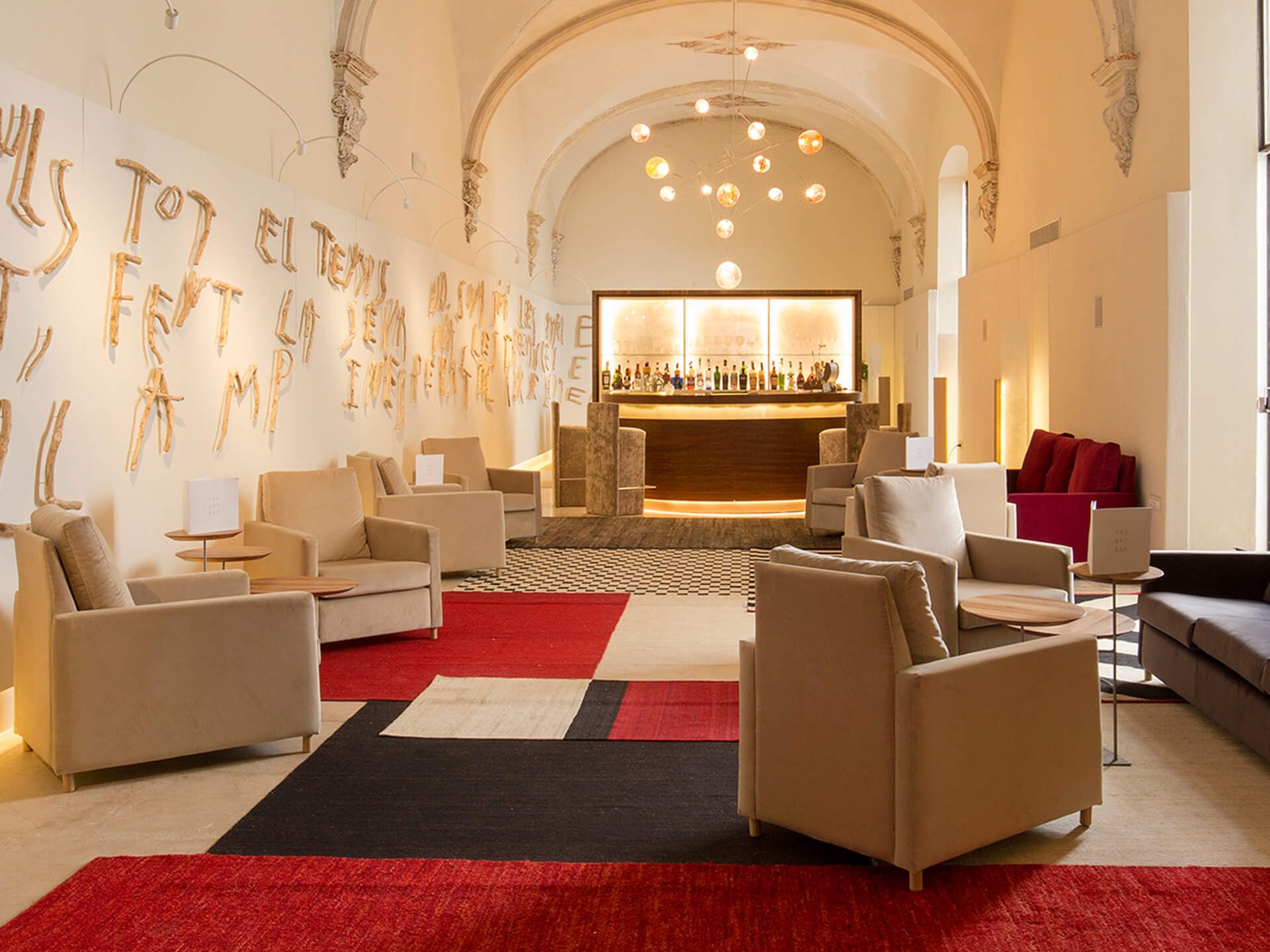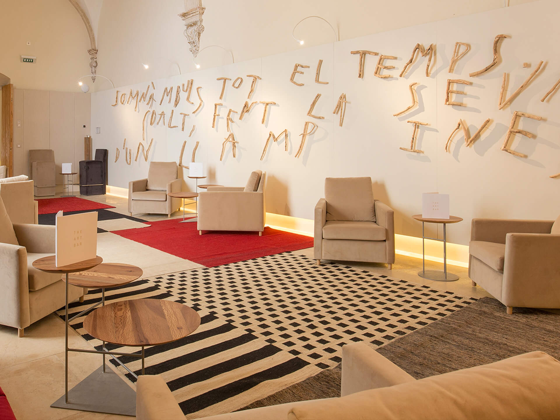 El hotel cuenta con un amplio vestíbulo blanco y ventilado y un Art Bar abovedado, que antiguamente fue el refectorio del monasterio. El asombroso pasillo cubierto con obras de arte como el poema de Jaume Galmés transcrito en enormes letras de madera en una pared entera por el artista local Guillem Nadal o el gran mosaico de alfombras que aportan calidez y gran impacto visual, son particularmente llamativas.