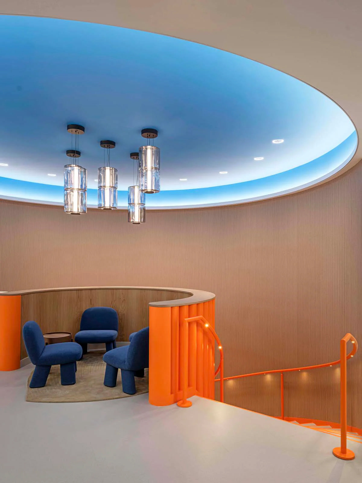 Aquí todo es juego. El color adquiere un papel central en los interiores: las paletas de colores atrevidas, pero cuidadosamente equilibradas, hacen referencia a los icónicos ladrillos LEGO®, al tiempo que mantienen la sofisticación que se espera de una sede de oficinas de primer nivel. Las texturas y los materiales aportan calidez, mientras que las estrategias acústicas cuidadosamente estudiadas mejoran el confort, reforzando la idea de que la productividad prospera en entornos inspiradores.