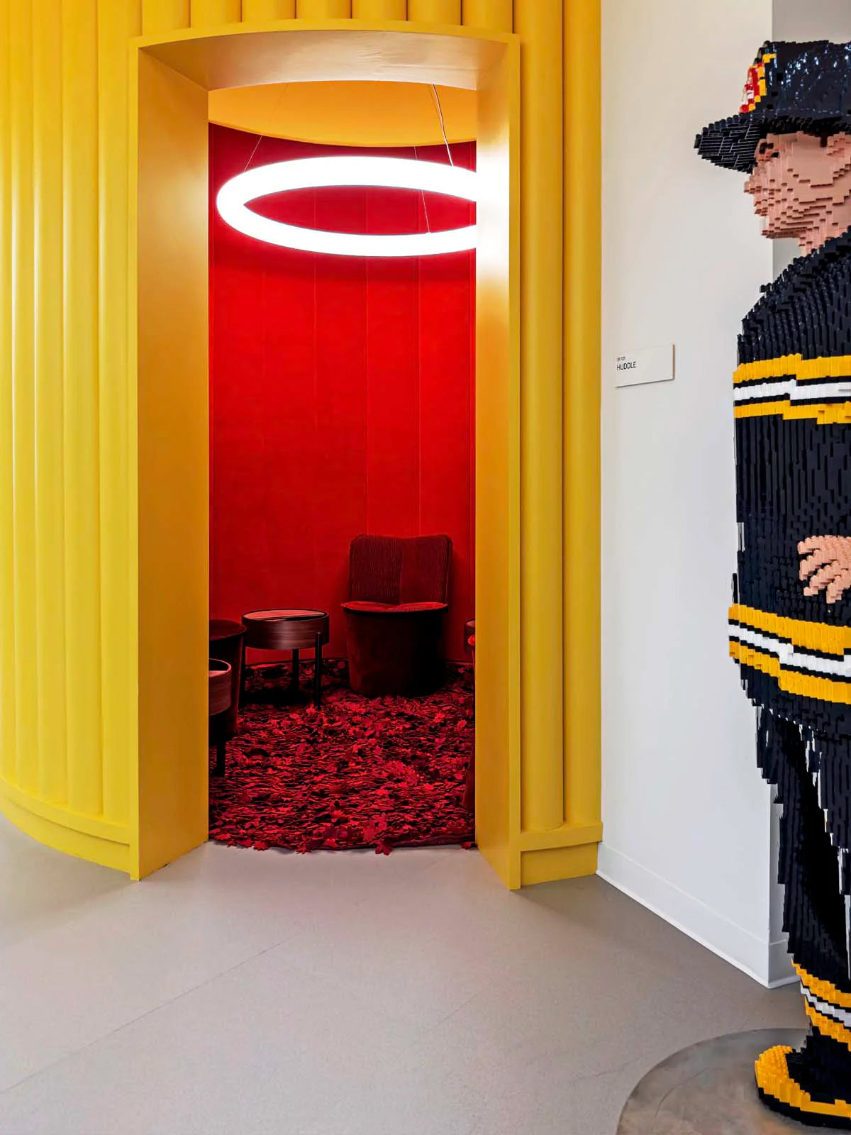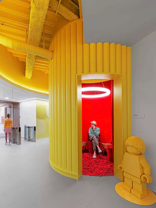 Este espacio, que se extiende a lo largo de varias plantas, refleja la misión del Grupo LEGO®: inspirar y formar a los constructores del mañana. A lo largo de todo el espacio se despliega un conjunto de entornos adaptables, desde zonas abiertas y salas de reuniones modulares hasta zonas tranquilas para concentrarse y salones informales, que fomentan el movimiento, la interacción y el intercambio creativo.