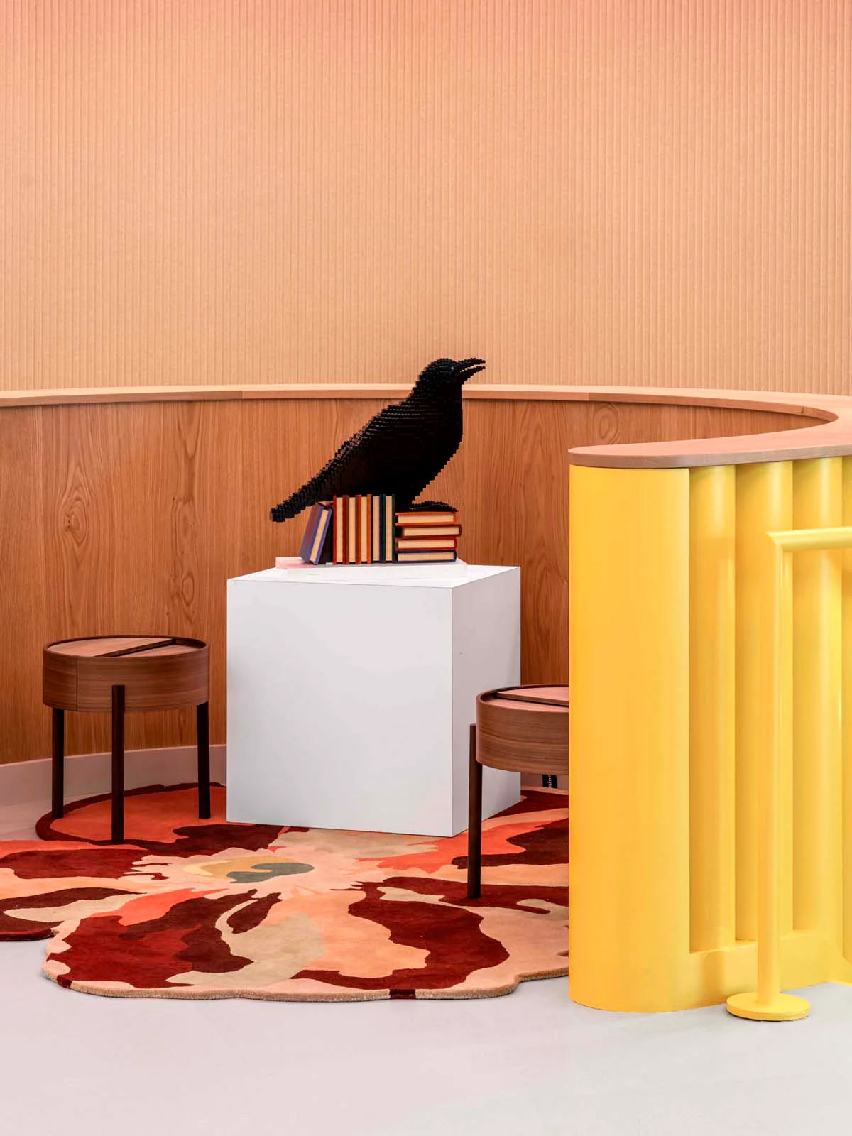 Cada pieza contribuye a crear una experiencia espacial, donde la que la calidez de los materiales contrasta con la claridad arquitectónica, reforzando el diálogo entre la alegría y la precisión.