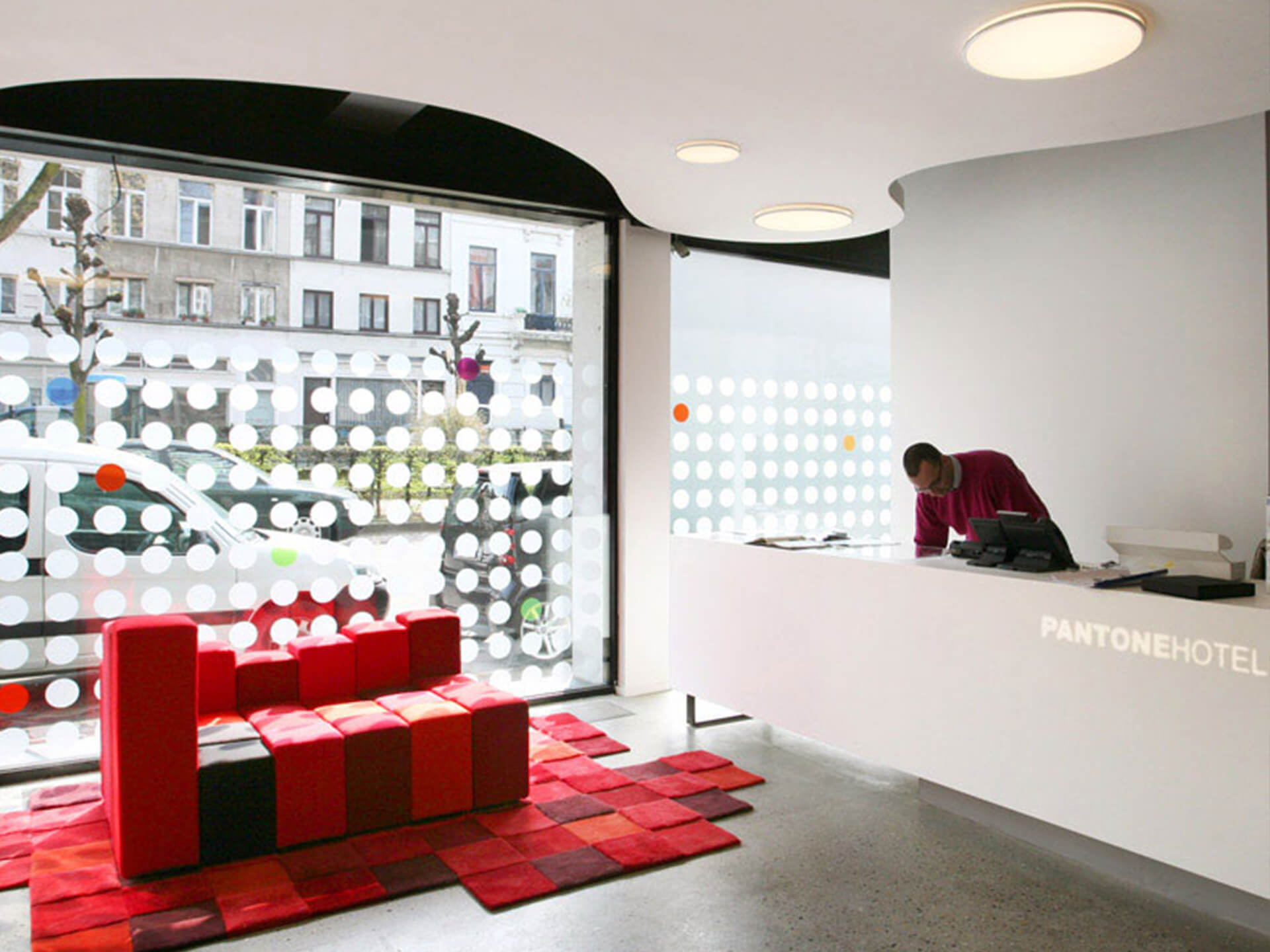 El hotel Pantone en Bruselas se ha creado en base al uso excepcional del contraste; un lienzo blanco proporciona un espacio limpio para que los colores saturados resalten. Las habitaciones cuentan con una fotografía impecable del fotógrafo belga Victor Levy.