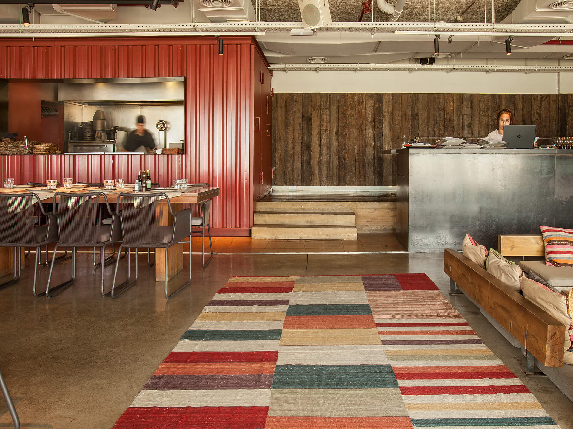 El restaurante Pez Vela de Barcelona es un espacio fresco e informal para disfrutar tanto en verano como en invierno. La madera y los materiales cálidos de su interior, así como elementos textiles como las alfombras en la zona de espera, generan una sensación de calidez y de hogar que invita a disfrutar de la propuesta gastronómica durante todo el año.