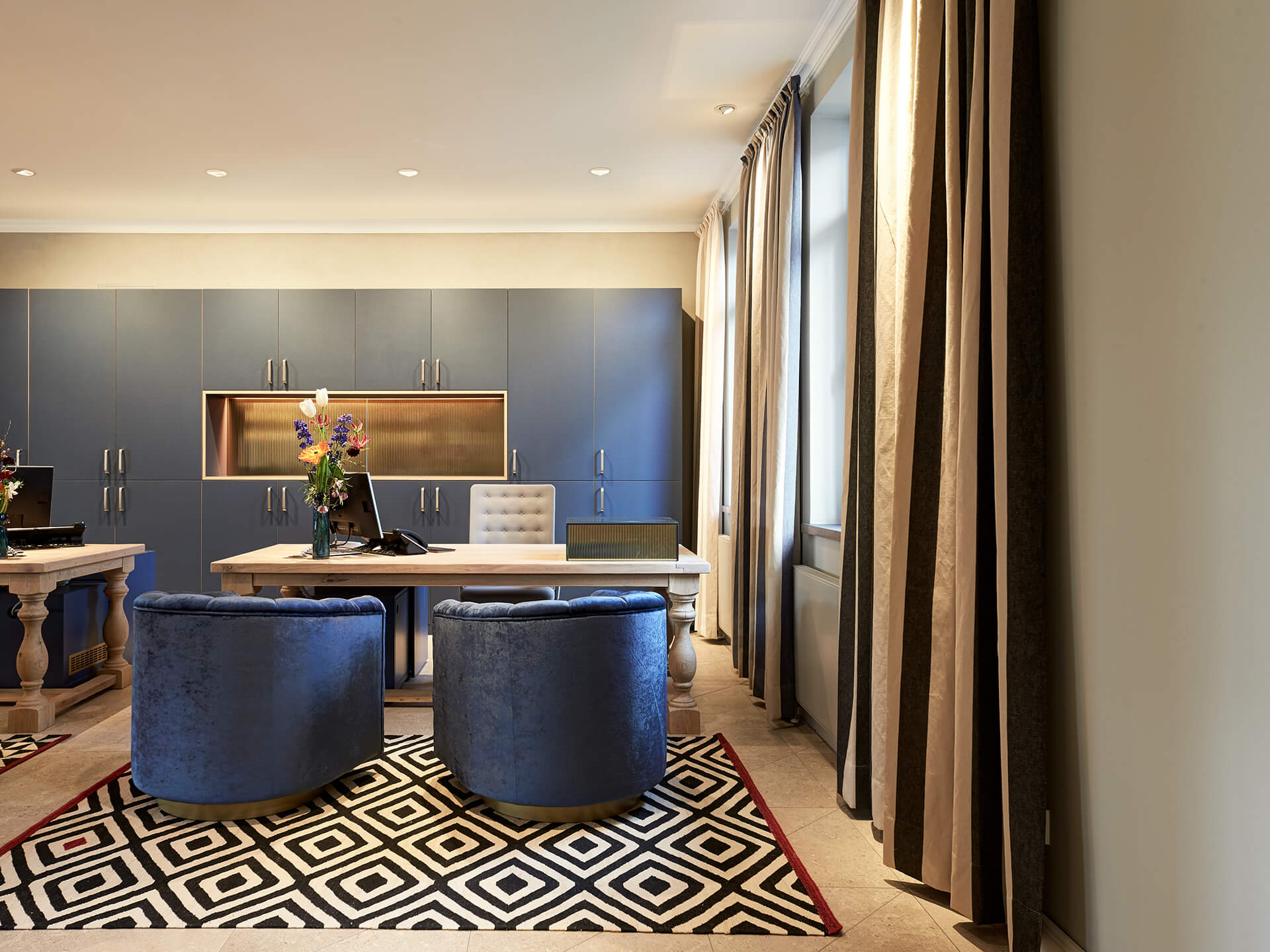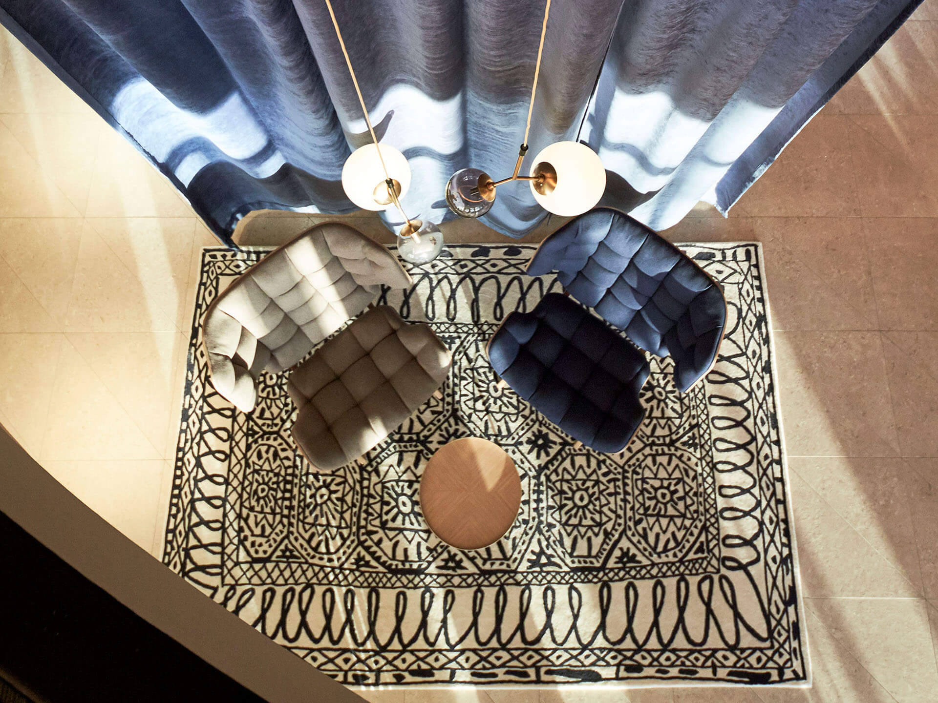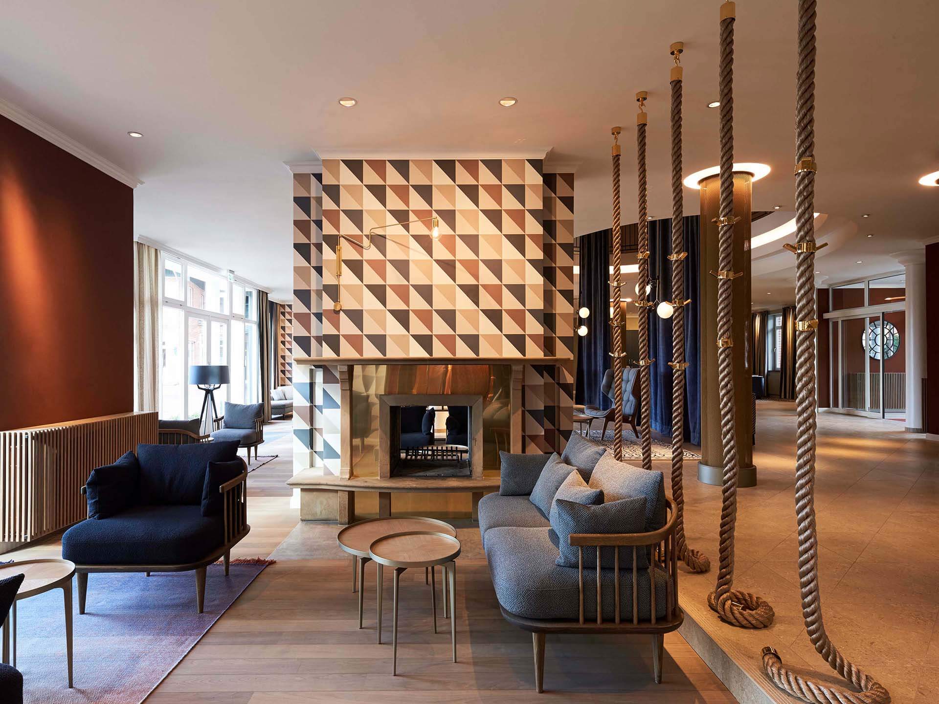La renovación del hotel Steigenberger Treudelberg en Hamburgo ha dado como resultado una elegante casa de campo con toques modernos. El living lobby, o lo que antiguamente fue la sala de estar de la casa, se convierte hoy en el punto de encuentro central para los huéspedes del hotel. Una re-decoración de tonalidades cálidas, con aportes de color ubicados principalmente en paredes y suelos, todos ellos revestidos con alfombras nanimarquina.
