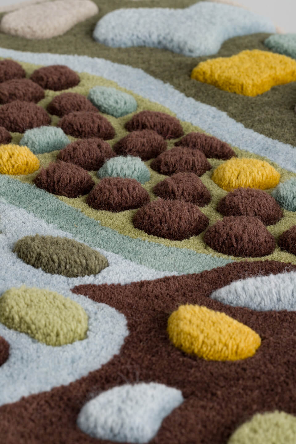nanimarquina colaboró en la producción de los diseños "Zebra & Ostrich", "Chameleon & Lichen" y "Sunbirds & Tropical Flowers 1.0". Se transformaron en relieves 3D y estructuras textiles mediante el uso de técnicas ancestrales de tufting.