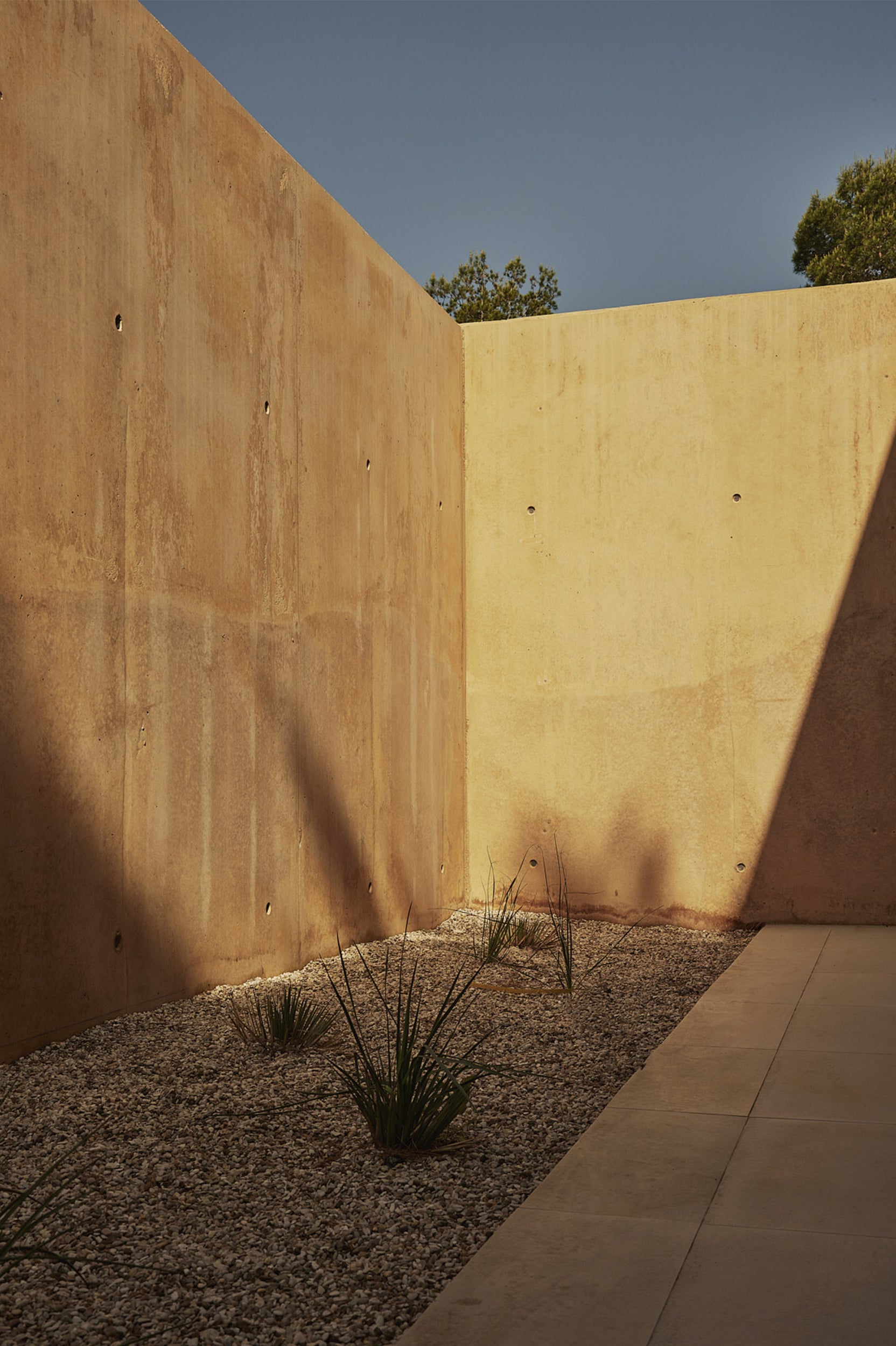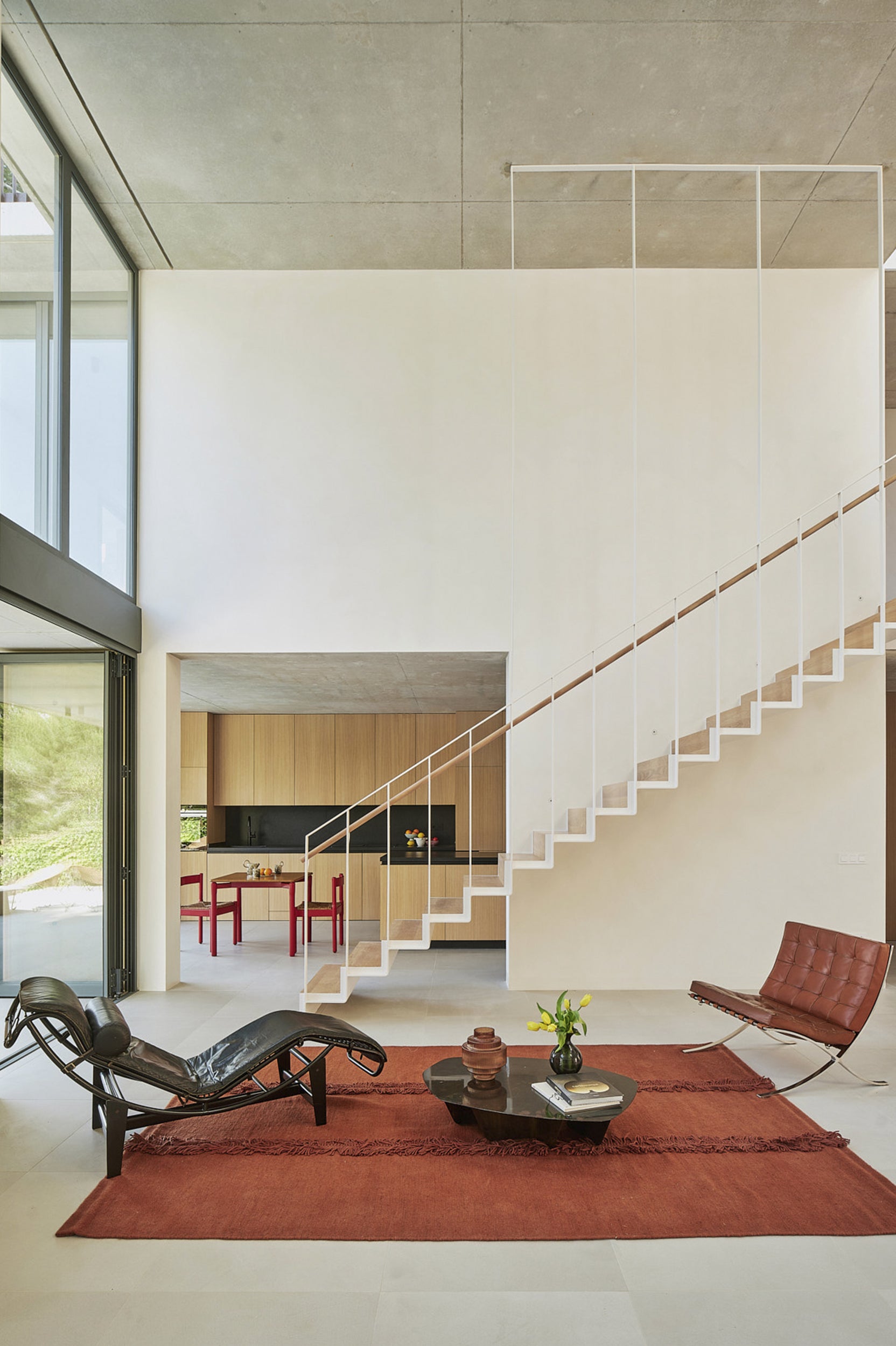 Una lectura atenta de la casa revela un juego de opuestos, desde la solidez de los materiales como el hormigón armado hasta la propia experiencia de la casa: cerrada e íntima a la vez que abierta hacia el paisaje; oscura y luminosa; rugosa y lisa.