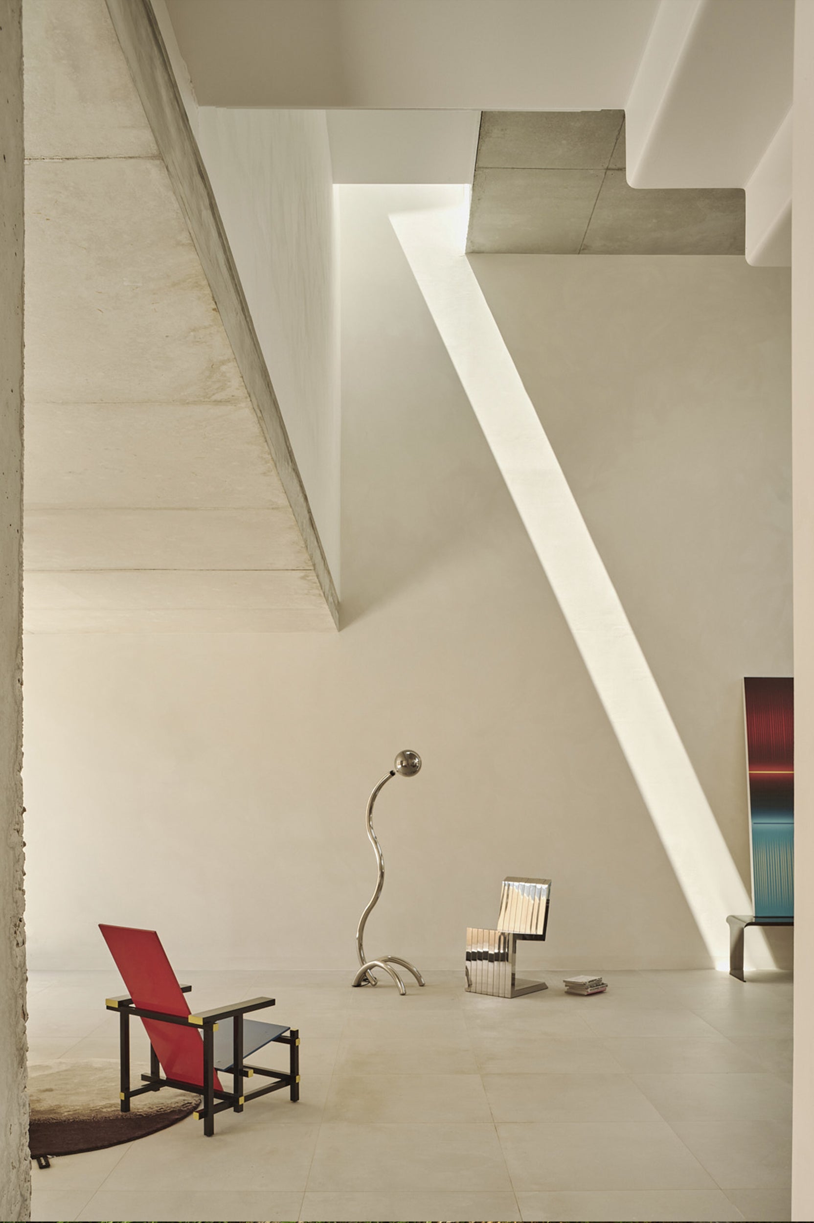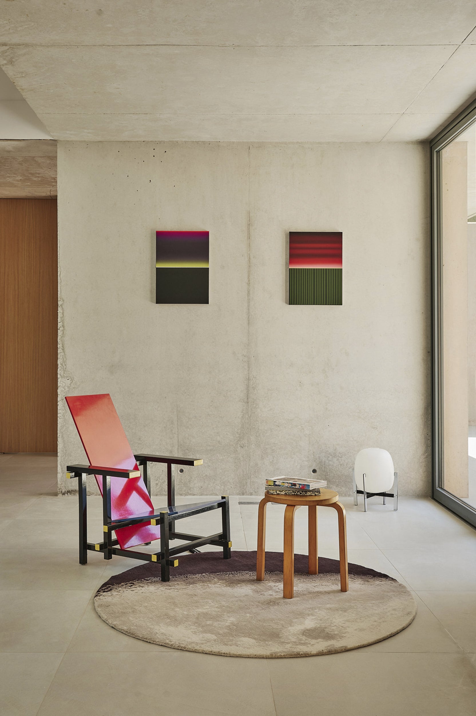 La elección del mobiliario siguió también esta idea de combinar clásicos de Carlo Scarpa, Mackintosh, Le Corbusier, Mies Van Der Rohe o Miguel Milá, con otras piezas más cercanas al arte de creadores contemporáneos como las alfombras de nanimarquina que se cuelan en los espacios comunes con esta misma armonía en la que se mueven todos los elementos en la casa.