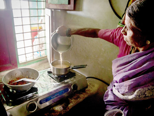 In India, more than a million people die each year from inhaling harmful cooking fumes. Additionally, cooking with an open fire contributes to greenhouse gas emissions. This project is responsible for supplying biogas installations to 12,000 farming families, which provides health benefits for the entire family, as well as saving time on housework and searching for firewood.