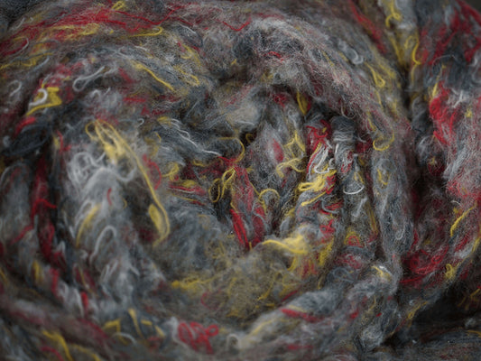 The more we crushed and mixed the colored wools, the grayer the fibers became; and on the contrary, the less we crushed them, the more tonal and random richness we achieved.