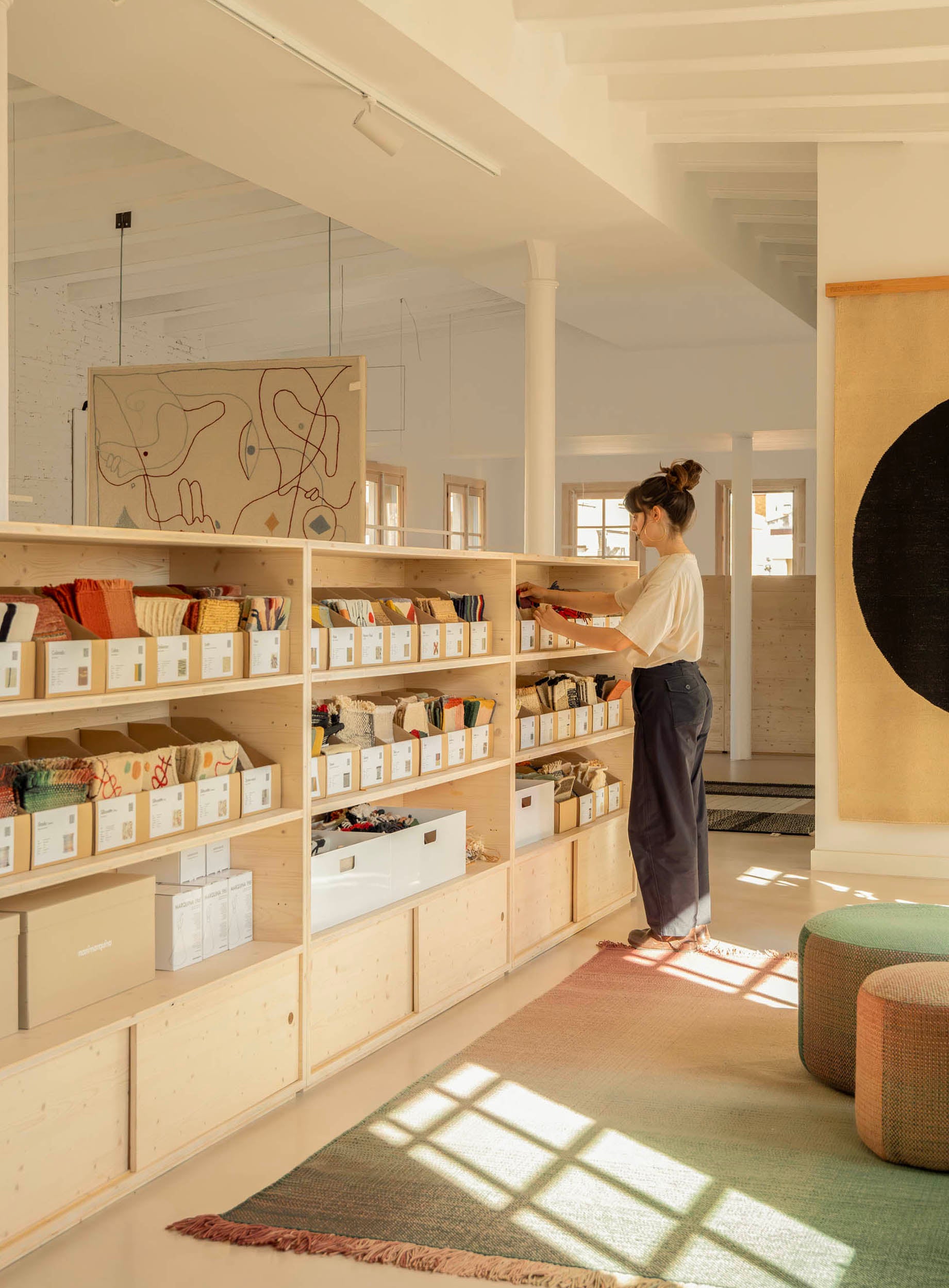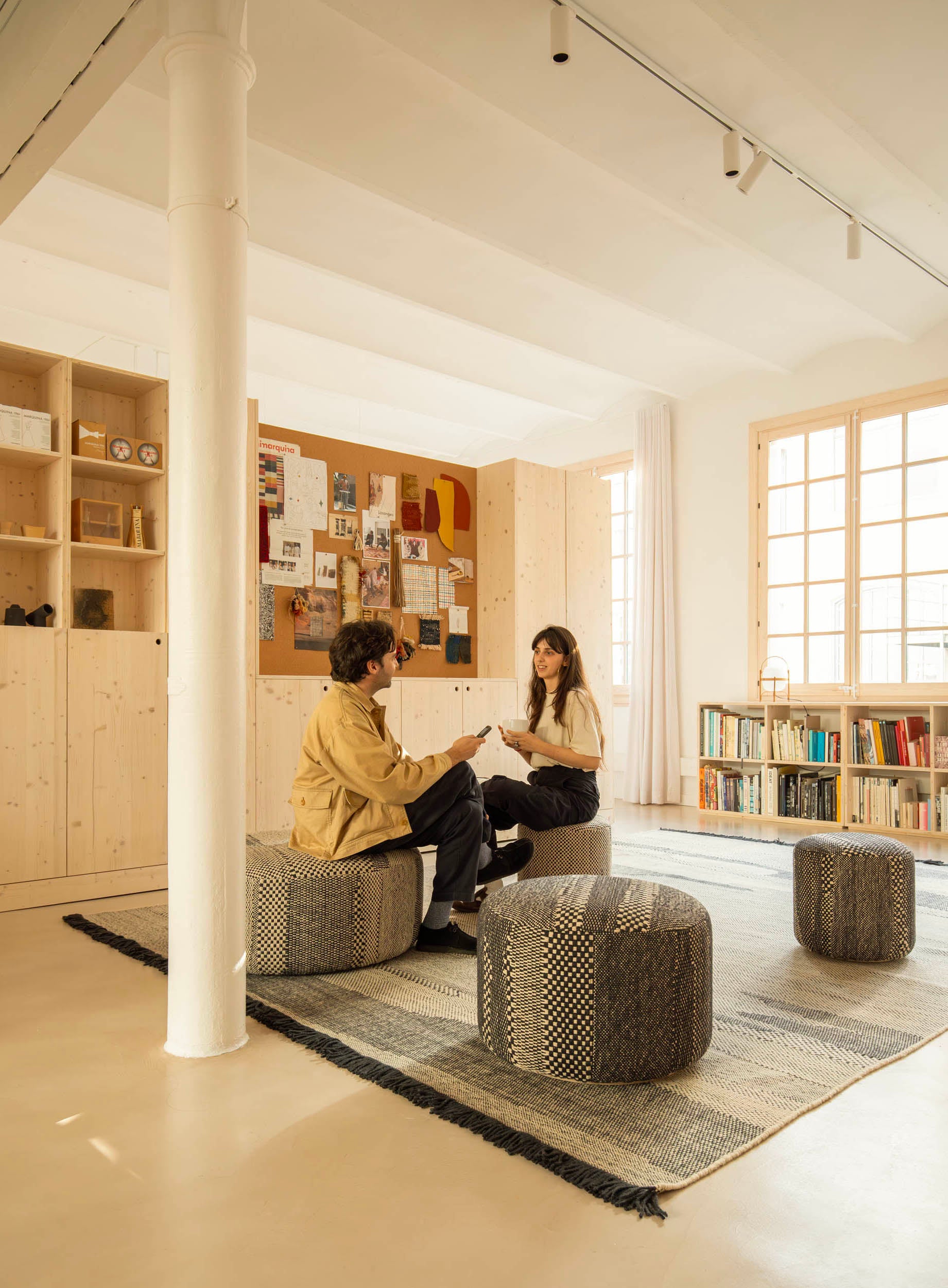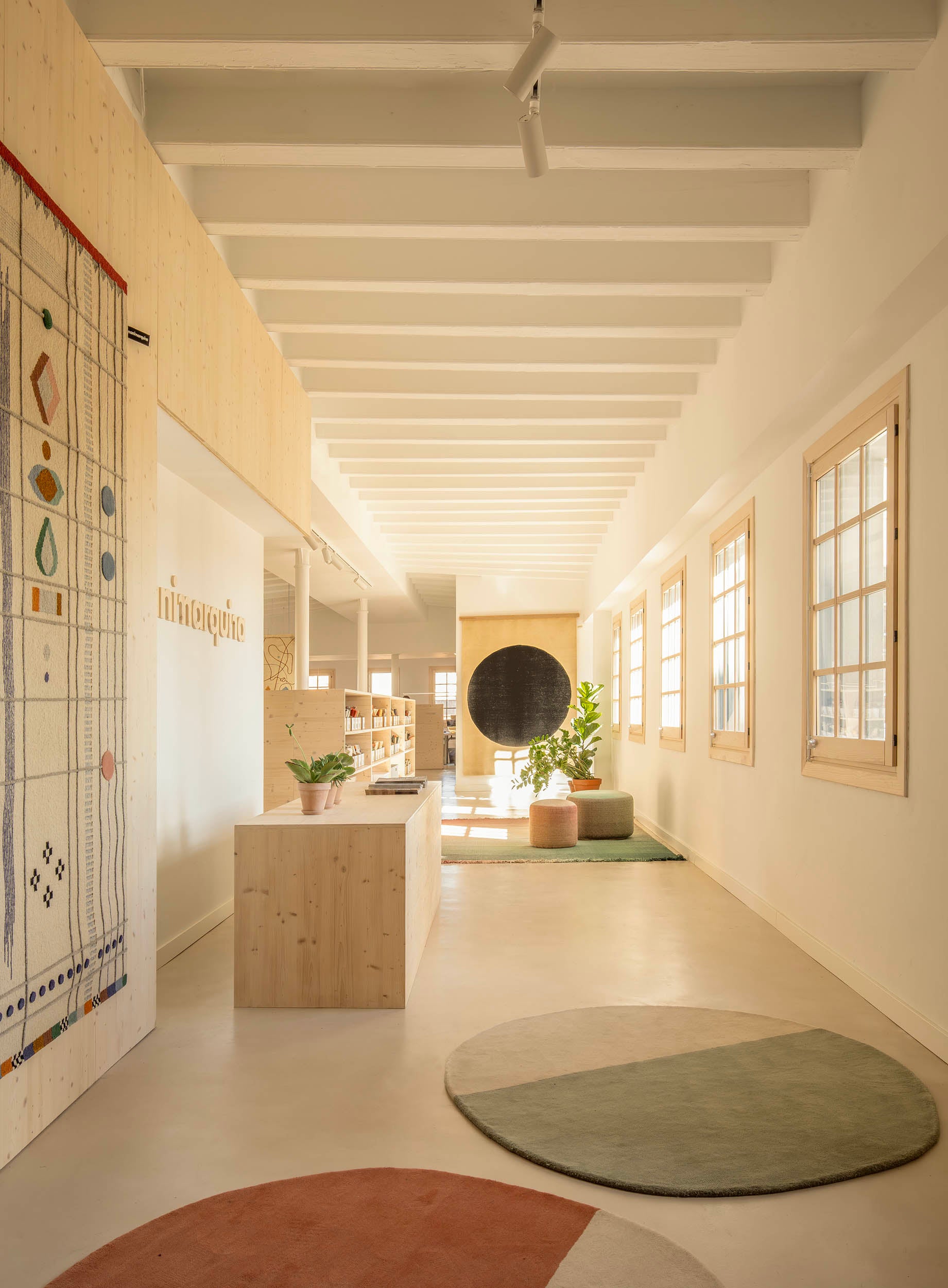 For the furniture, brands with a design philosophy aligned with that of nanimarquina were chosen, along with a strong commitment to sustainability: Santa & Cole lamps, made from environmentally friendly and locally sourced materials, and Vitra office chairs, fully recyclable and ergonomic, combining the functionality and comfort sought for the project.