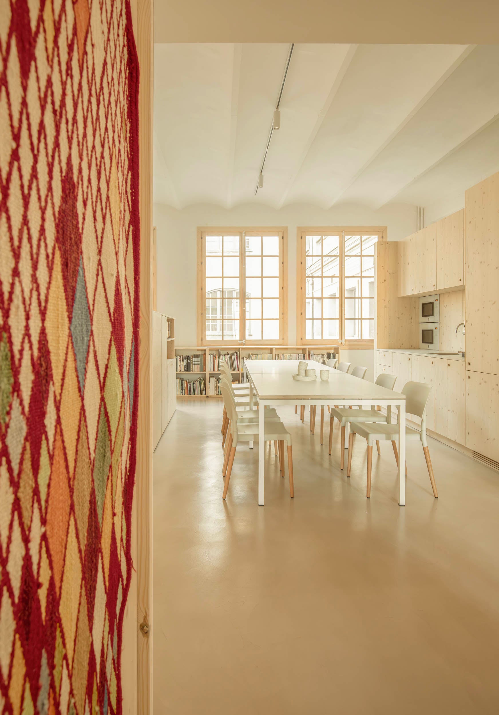 Located in a former textile factory in the picturesque Gràcia neighborhood, the nanimarquina offices have been reborn through a project led by Paula Brusés Marquina (interior design) and Robert Pallí (architect). The proposal sought a comprehensive contemporary renovation that would preserve the essence of the original industrial building, constructed in the early 20th century, while transforming it into a modern and welcoming work environment.