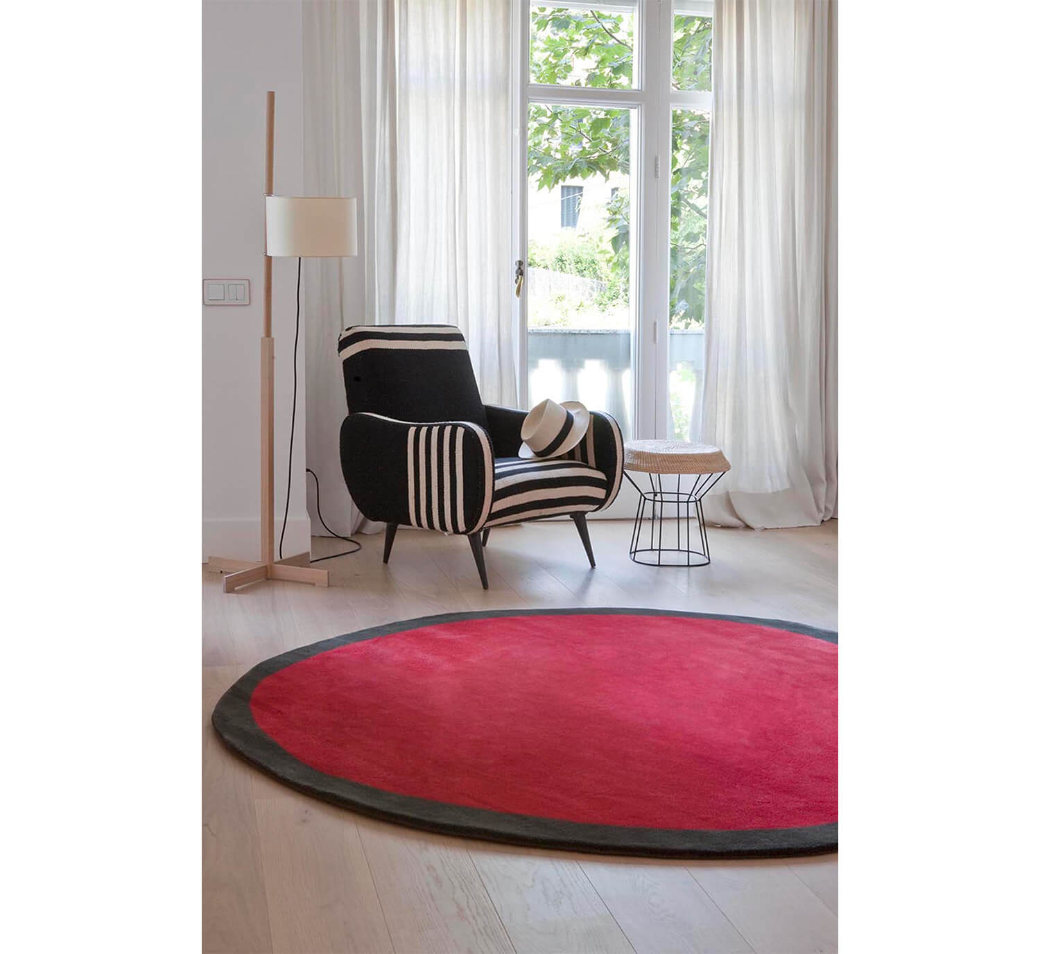 The Aros series includes three models of round rugs, in three colors and three different sizes, and a square version, in which the circle is drawn inside.
