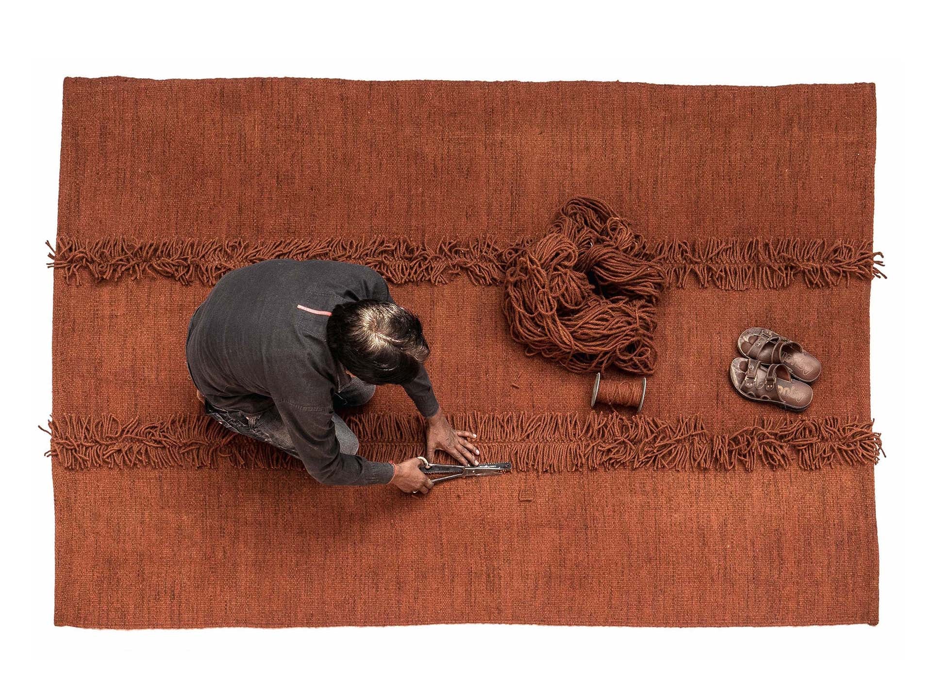 Hand-woven by hand in India, Mía is a Dhurrie that is constructed by joining three individually dyed pieces, thus achieving a worn, lived-in effect.
