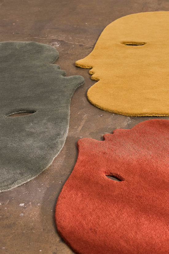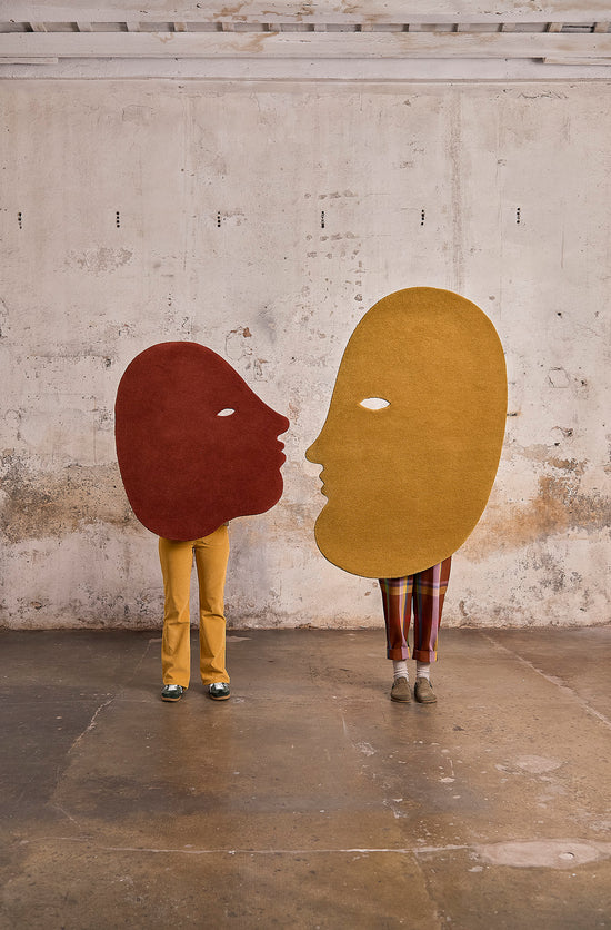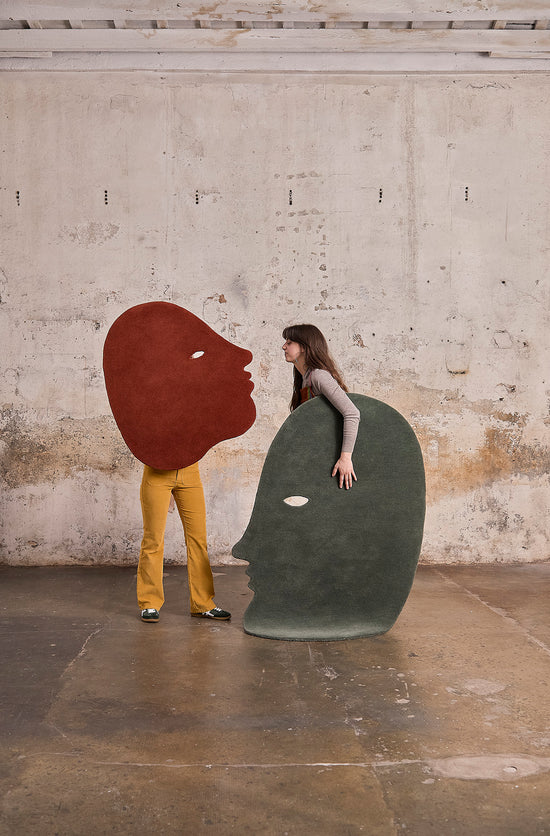 With a vibrant, ironic and colorful design, each rug features organic shapes and bold colors that invite interaction. A celebration of dialogue and communication through the expressiveness of their faces, always playful and humorous.