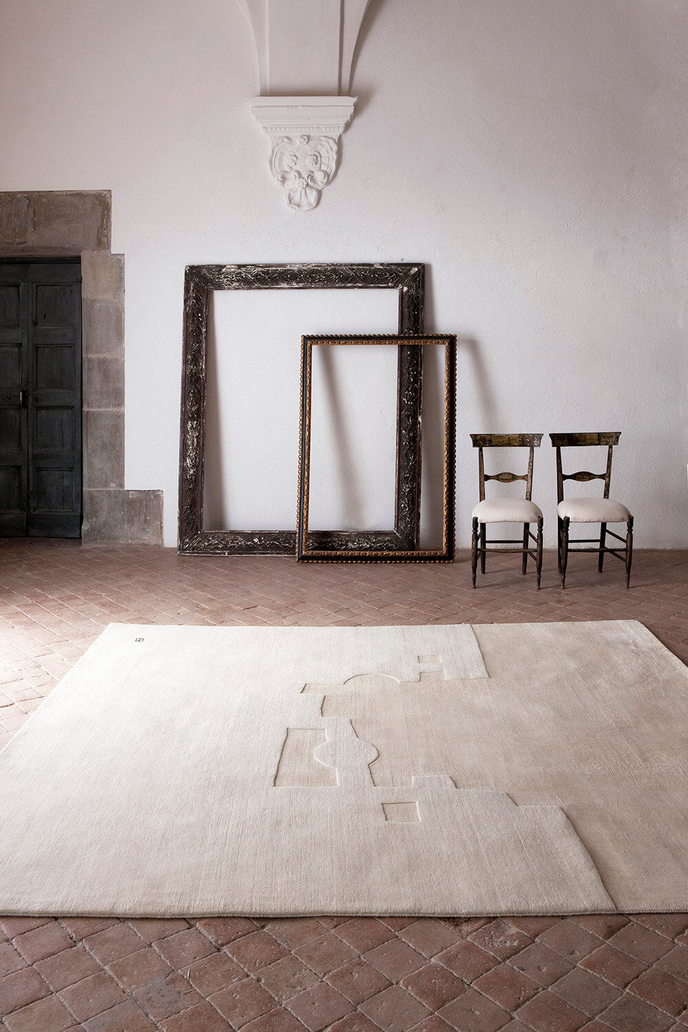 Translated with the utmost accuracy, Gravitación 1994 is an indoor rug hand-woven with New Zealand wool and silk using the hand tufted technique.
