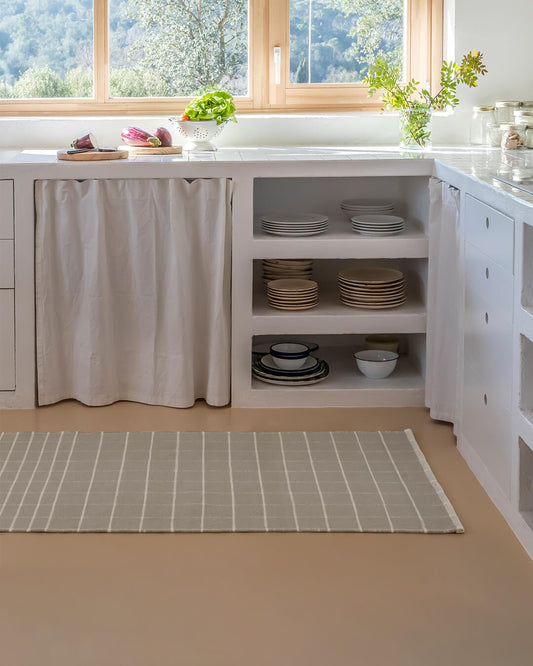 Las alfombras más alargadas o conocidas como pasilleras pueden funcionar muy bien en cocinas. Para separar, por ejemplo, la zona de preparación y de comida, o para indicar el cambio de estancia.