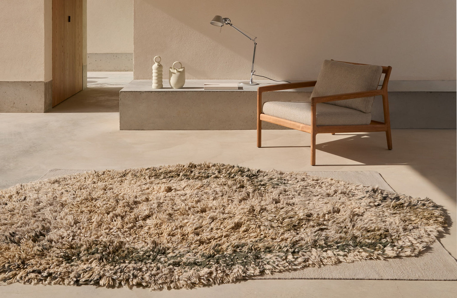 La colección Alga de Nani Marquina es una invitación para los sentidos inspirada en los campos marinos. Una alfombra que destaca por su forma orgánica, en movimiento, tejida en hand knotted sobre un dhurrie hand loomed. Pero la complejidad del diseño va más allá de su forma: el reto principal ha sido conseguir visualmente una alfombra dinámica utilizando fibras tan largas.