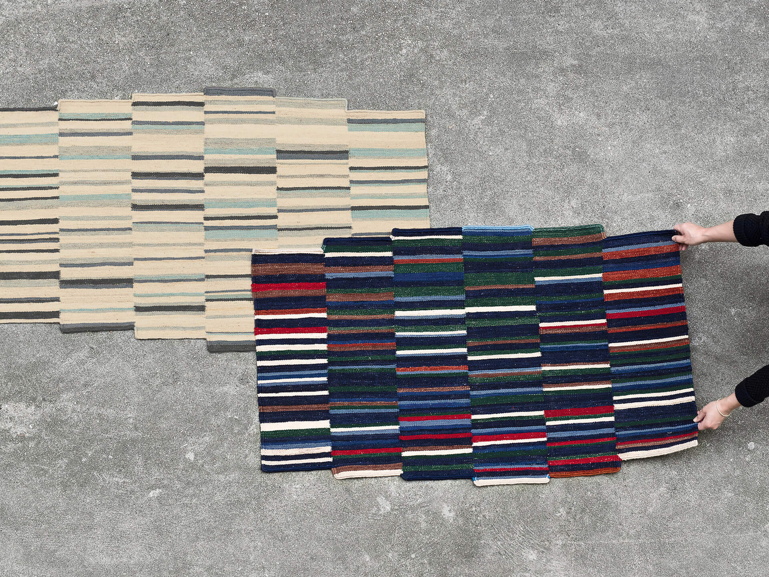 La colección Lattice hecha artesanalmente mediante la técnica ancestral hand loomed kilim se presenta en cuatro medidas y dos versiones de color.