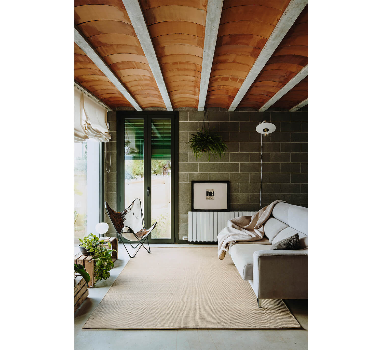 El espíritu de los tradicionales Tatamis de paja japoneses trasladado a esta alfombra Dhurrie hecha a mano con un 50% de lana de Nueva Zelanda teñida y un 50% de Yute natural.